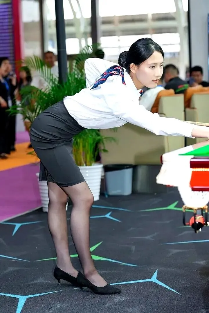 .哪怕是在台.球厅,.也能.保持职场女.性的精致优.雅。