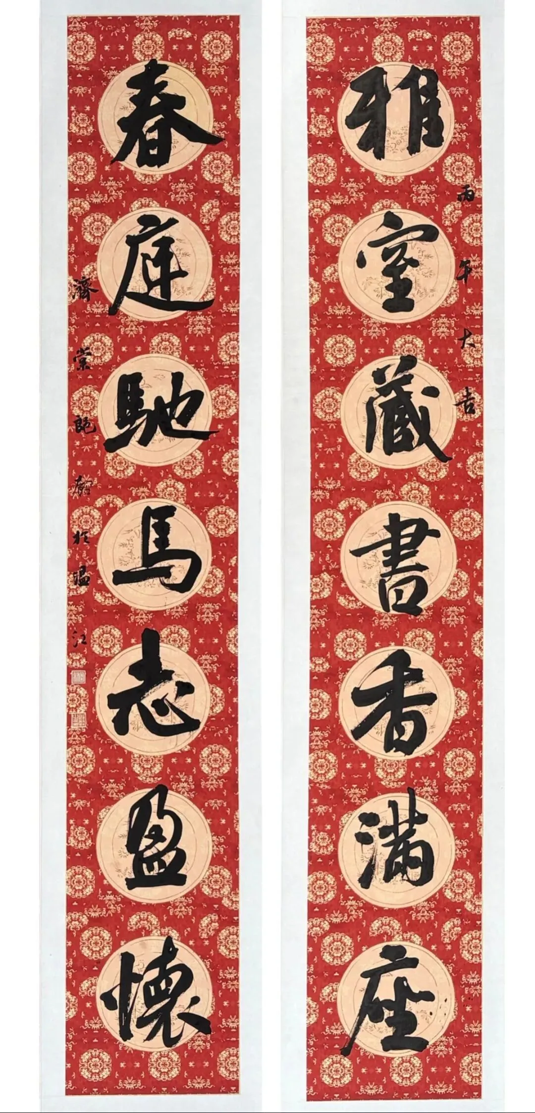■ 释文:雅室藏书香满座·春庭驰马志盈怀
