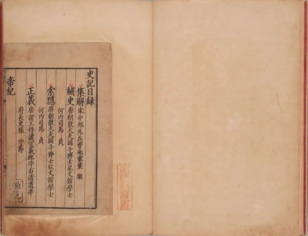 《史记》是中国历史上第一部纪传体通史,以写人物为中心,被列为二十四史之首。史上评注《史记》最有影响的是俗称 “三家注史记”:《集解》(裴骃注)、《索隐》(司马贞注)和《正义》(张守节注)。此为南宋建安黄善夫家塾刊本(最早三家注合刻本),现藏于日本国立历史民俗博物馆。