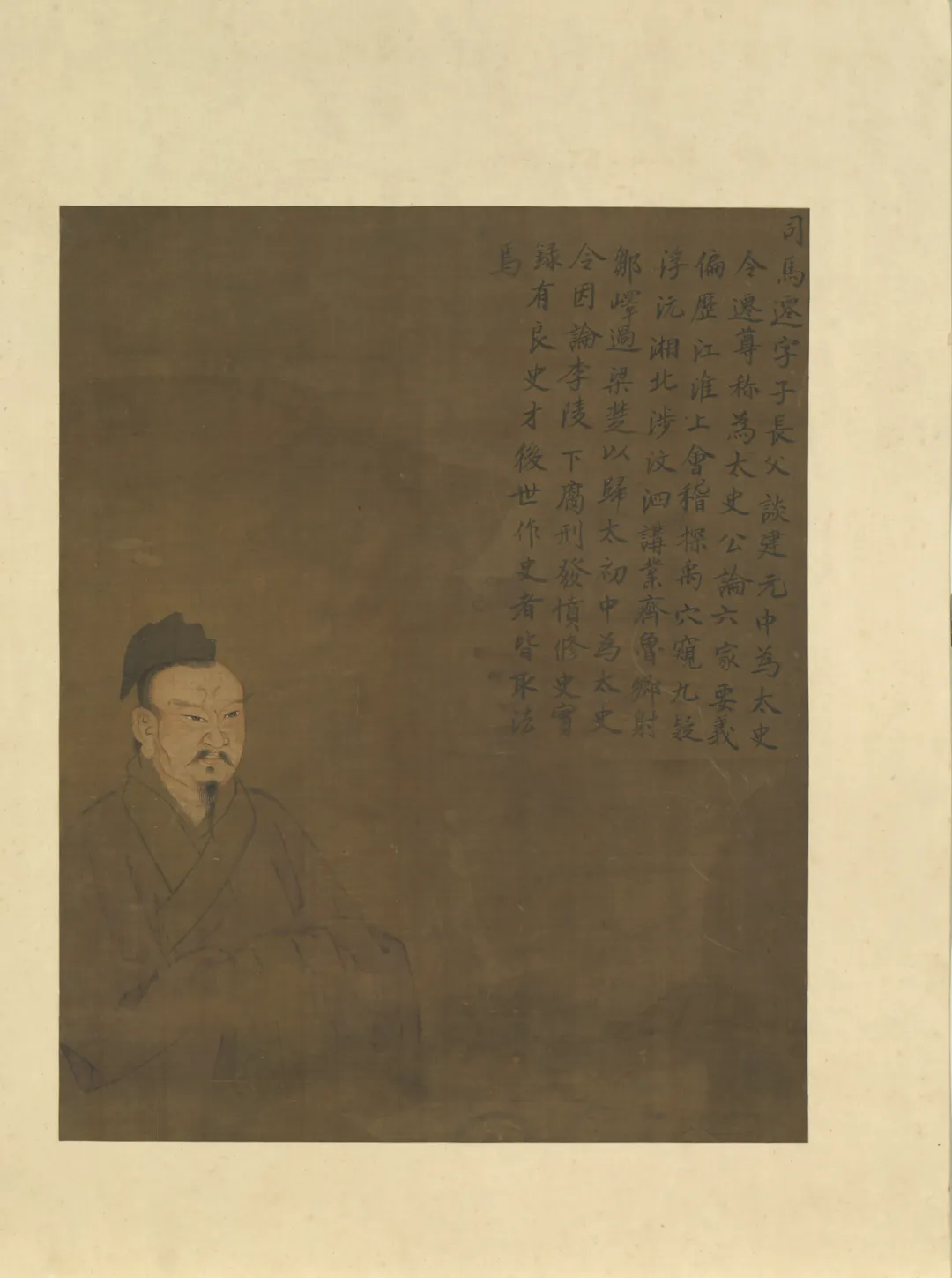 此画册原为清代宫廷南薰殿旧藏,这里是专门安奉历代帝后贤臣图像的重地,其收藏本身就意味着司马迁作为“圣贤”的历史地位得到了最高权威的认可。画像呈现出典型的宫廷肖像画风格,工整严谨,设色沉稳。