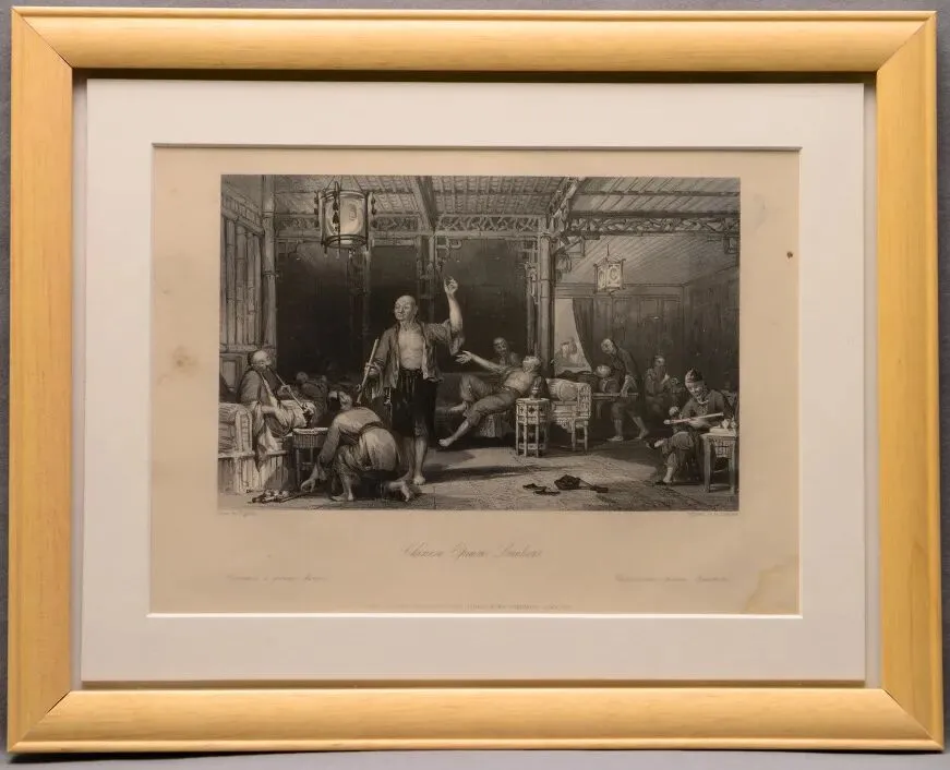 近现代 佚名 吸食鸦片的中国人印刷铜版画