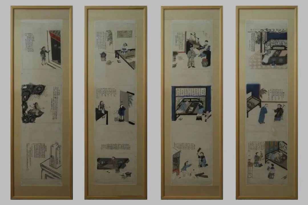 《愁城十二景》四条屏反映的仅仅是当时众多鸦片吸食者中的一位,社会上因吸食鸦片而倾家荡产、家破人亡的例子比比皆是。