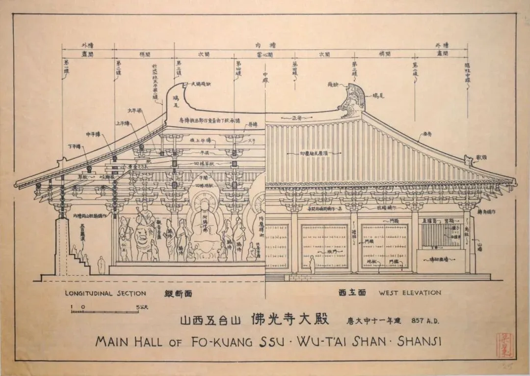 梁思成与林徽因等人发现并精确测绘佛光寺唐代大殿,一举打破了日本学者“中国大地已无唐代木构”的断言。这些手稿以其科学的测量数据、精美的艺术呈现,为“中国存在唐代建筑”提供了铁证,为国人和世界重新认识中华文明的物质成就,奠定了坚实的基石。