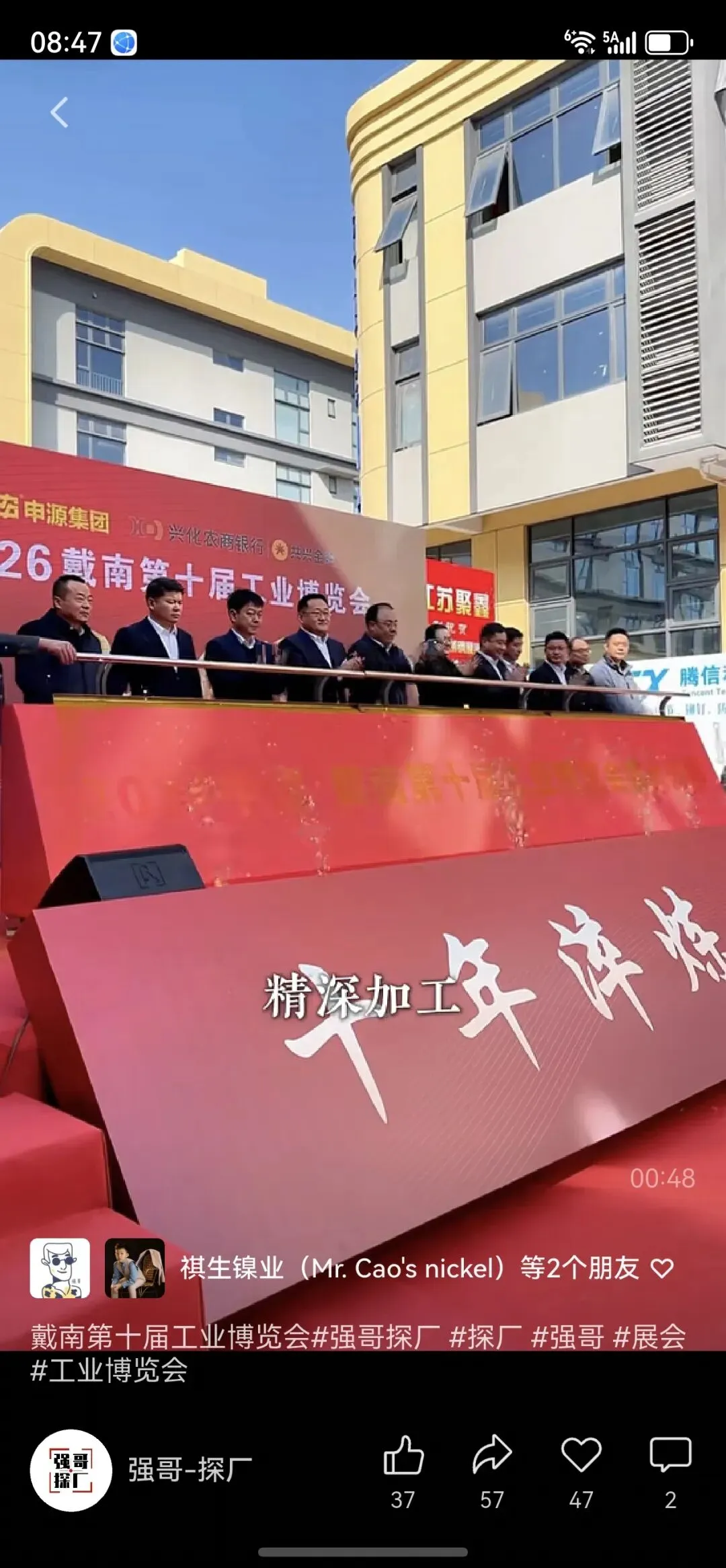 2 月 20日,马年新春正月初四,第十届戴南工业博览会正式开幕。根据 “强哥-探厂” 视频报道,展出面筋8000平方米,集中展示了不锈钢等各种产品与设备。