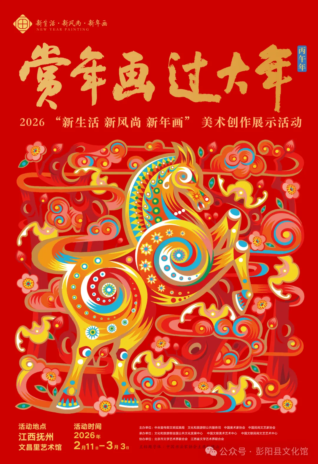 为深入学习贯彻党的二十届四中全会精神,传承弘扬中华优秀传统文化,丰富人民群众节日精神文化生活,激励广大群众振奋精气神、共创新生活,中央宣传部文明实践局、文化和旅游部公共服务司、中国美术家协会、中国民间文艺家协会联合举办2026年“新生活 新风尚 新年画”美术创作展示活动。现推出年画线上展,让我们循着年画的墨香与斑斓色彩,感受浓郁的新春年味。