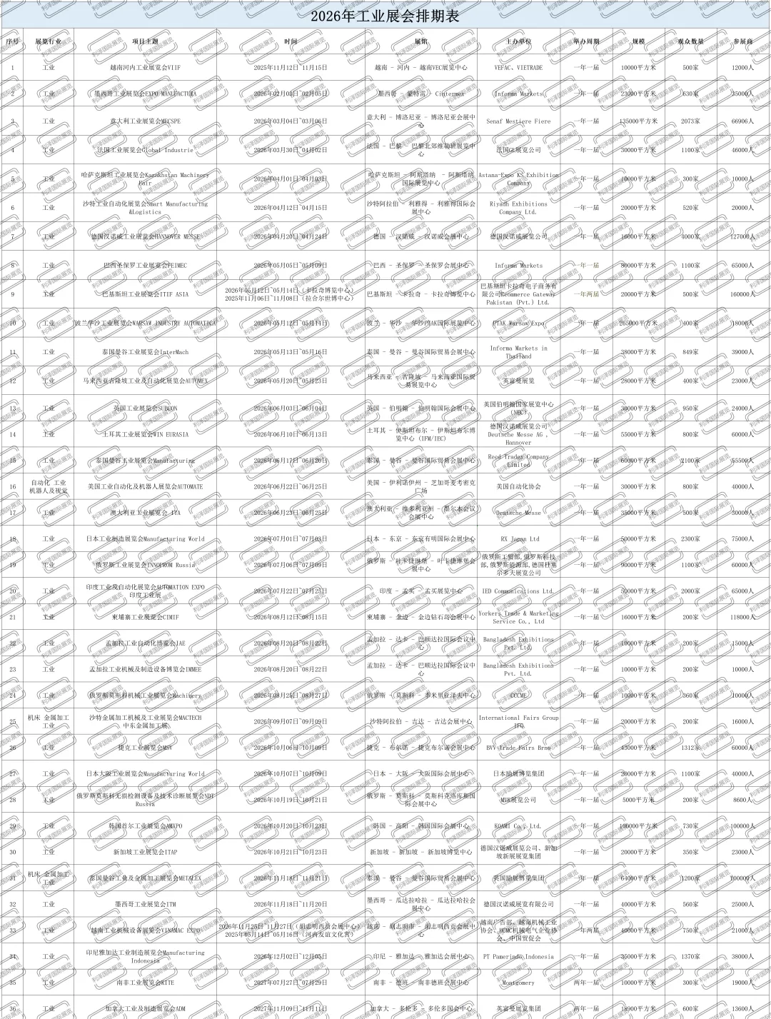 工业展会排期表