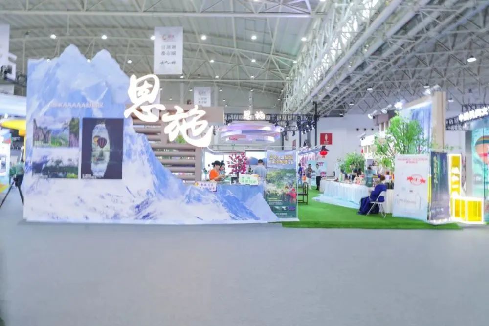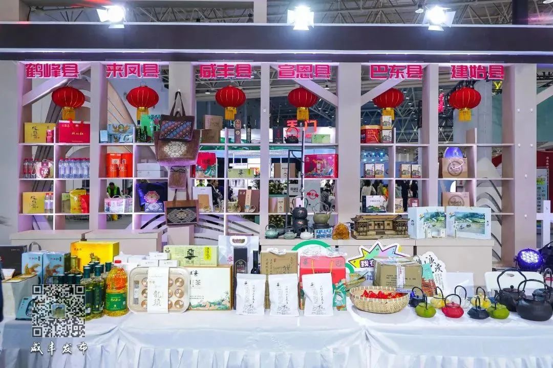 在恩施州展馆中,咸丰旅游景区——坪坝营景区、唐崖土司城遗址景区、唐崖河景区,咸丰农特产品——咸丰唐崖白茶、咸丰唐崖藤茶、咸丰土家手工麻糖、小村红衣米花生、唐崖神话甜红酒、咸丰富硒大米系列、咸丰土家糍粑,唐崖土司系列文创产品,吸引游客驻足,既让游客们沉浸式感受美丽咸丰,又能在逛、玩、吃中了解咸丰美食特色。