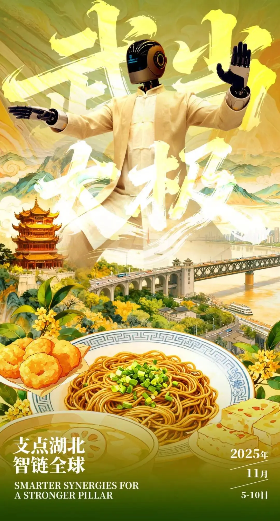 当热干面的香气与人形机器人的太极表演相碰撞