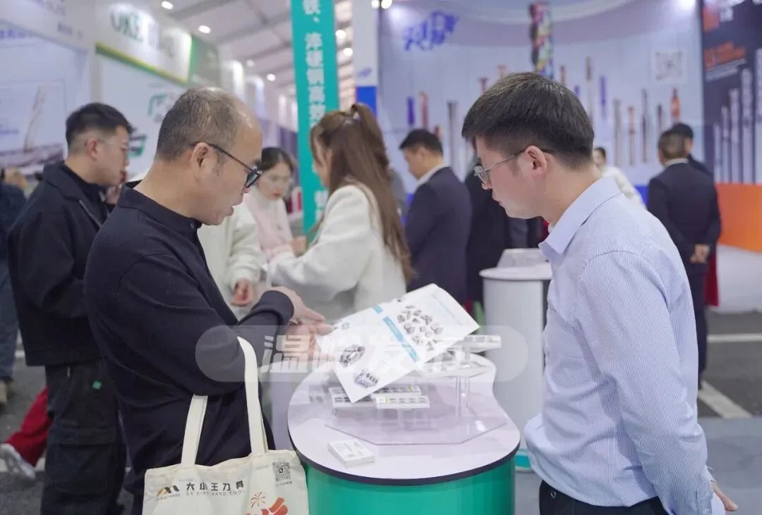 在力锋精密工具(浙江)有限公司展台上,多款高精度刀具备受关注。去年展会上,该企业带来的台阶式皇冠钻凭借高性价比与高精度赢得市场认可,今年完成优化升级后,再度成为展会上的热门产品。