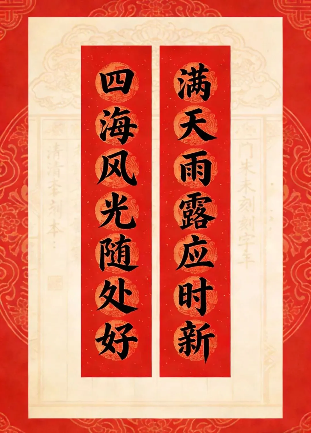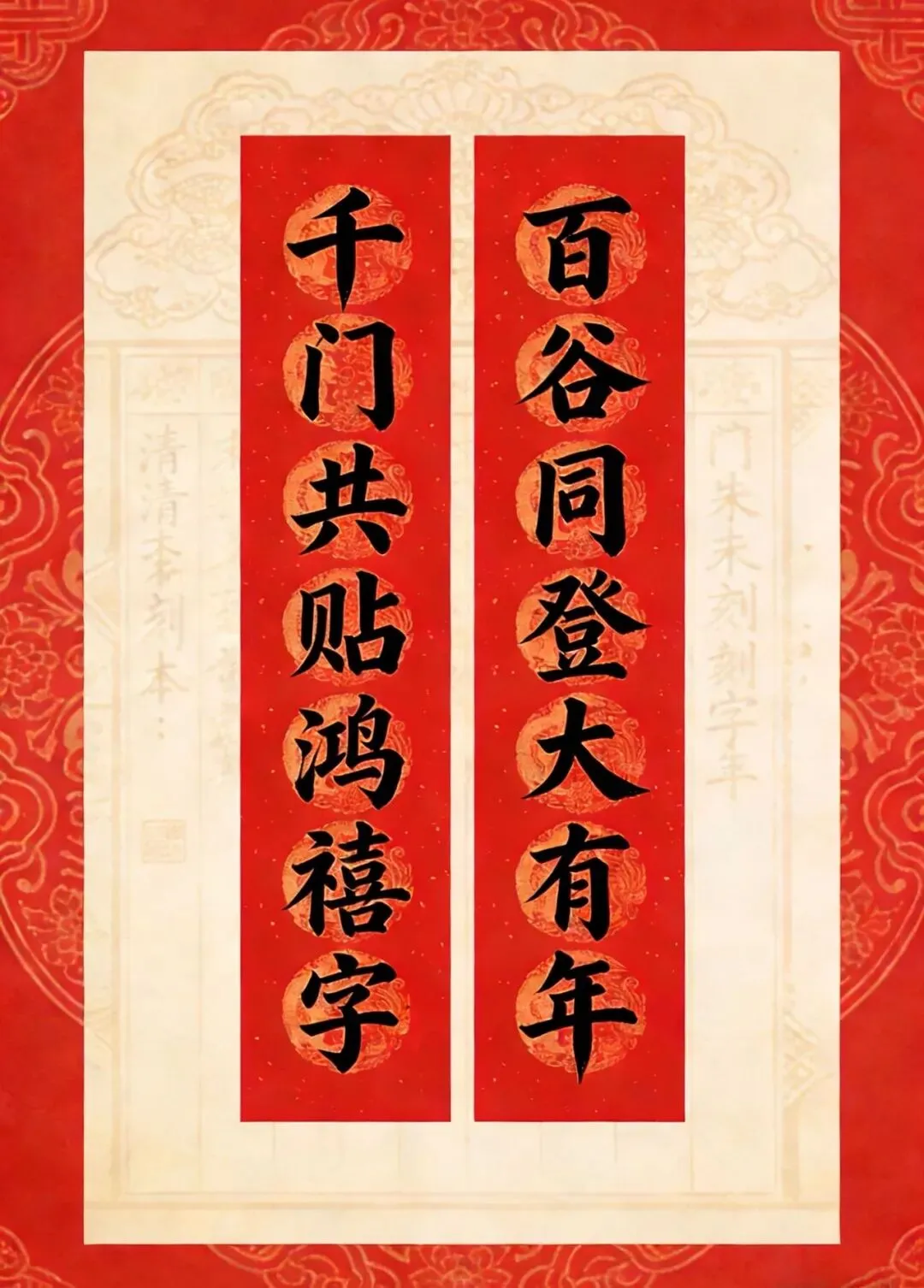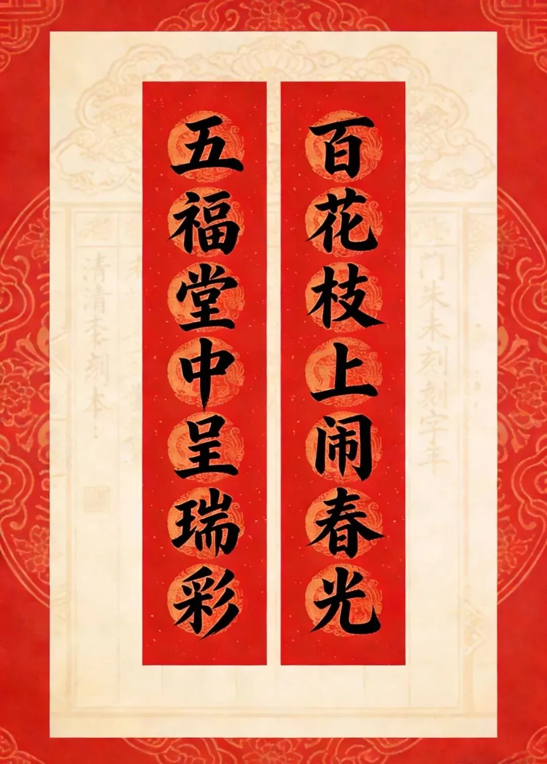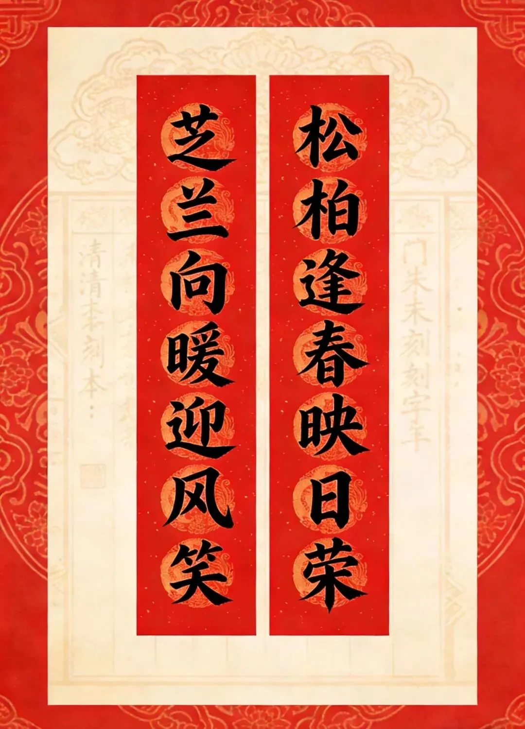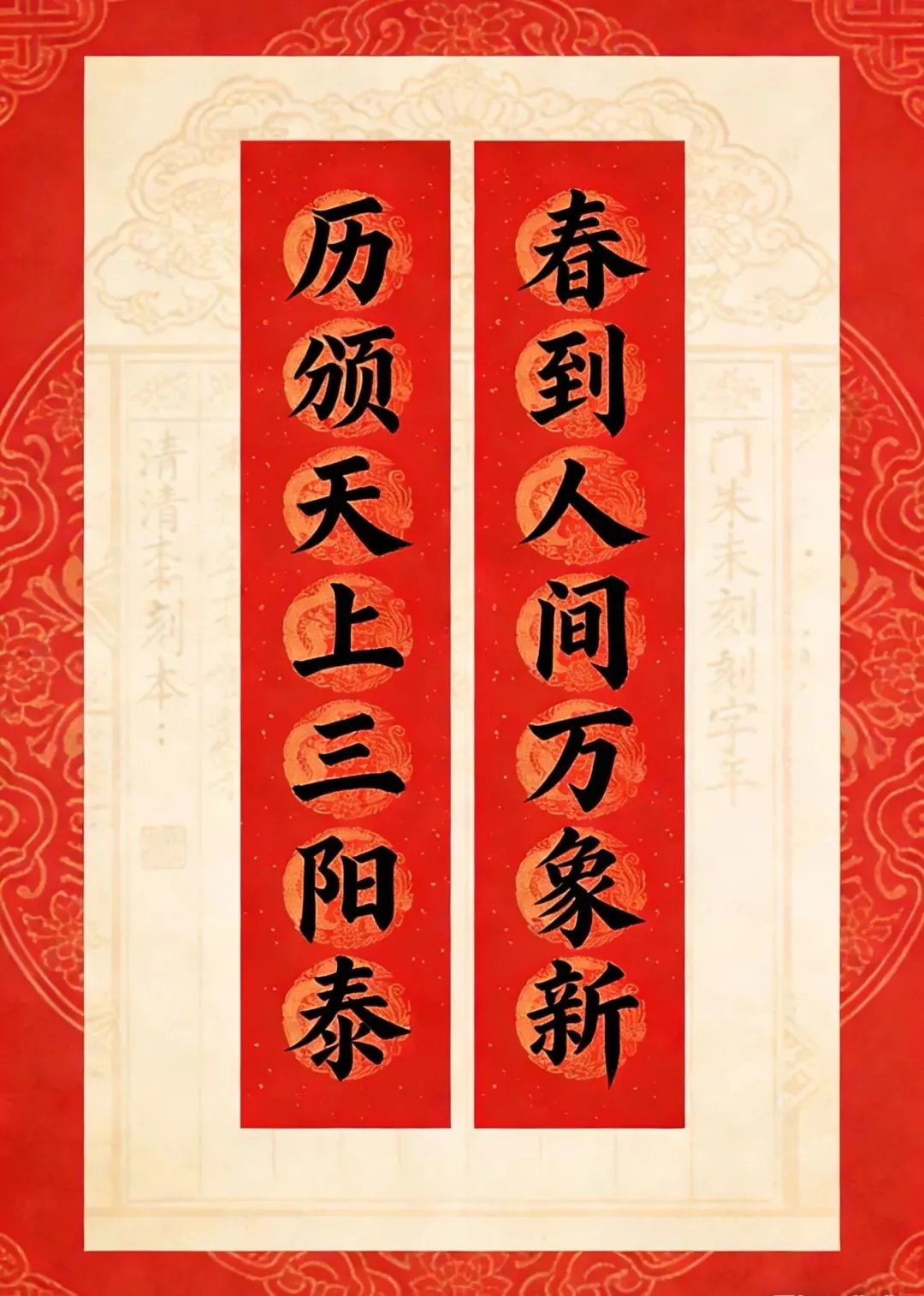 备注:“百副历代优秀春联”之一。2025年曾发布,下联为“百福庆春风”,选自清光绪二十四年(1898)刻本《对联大观》。