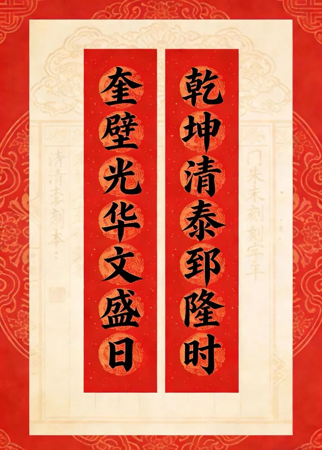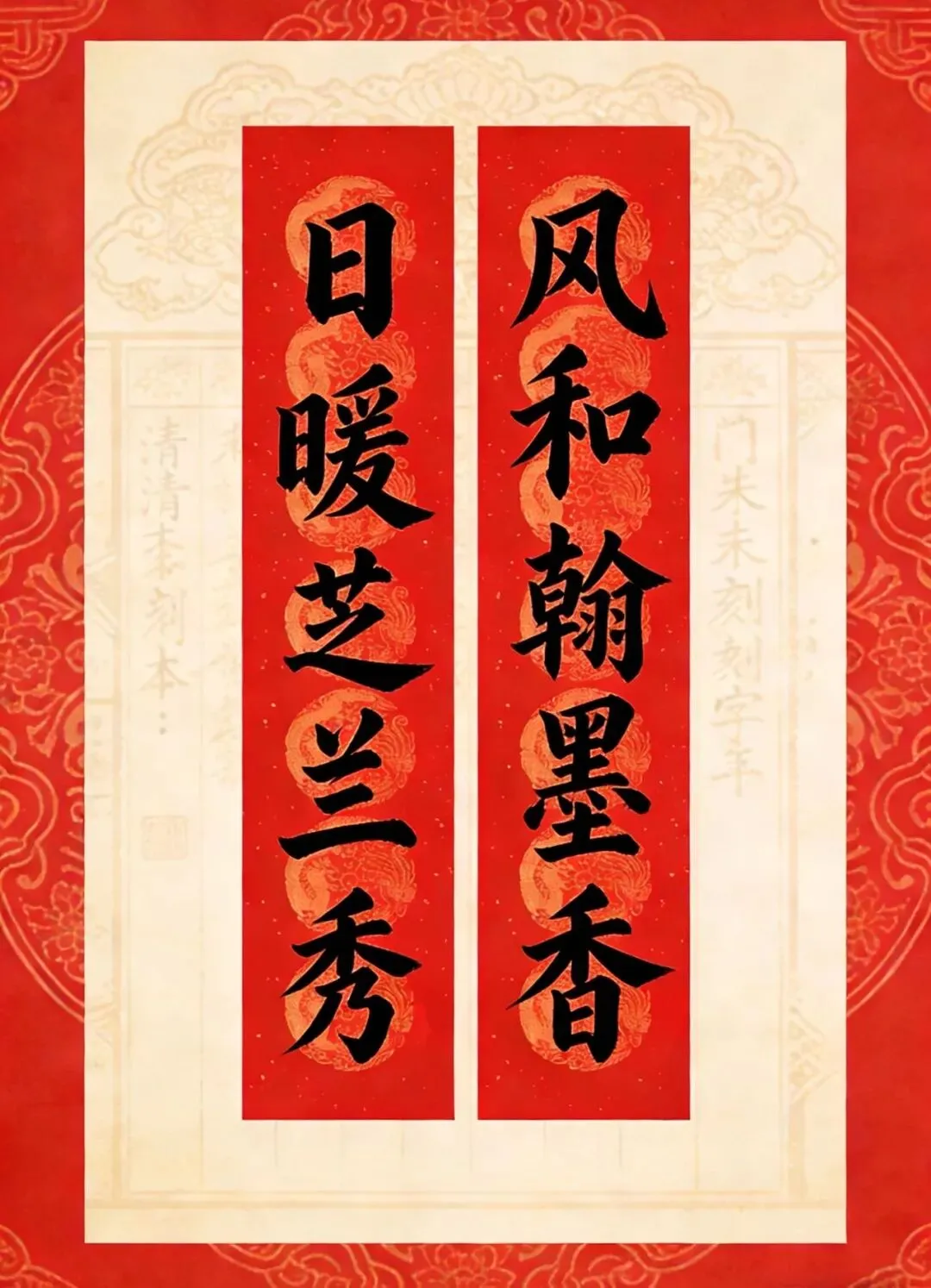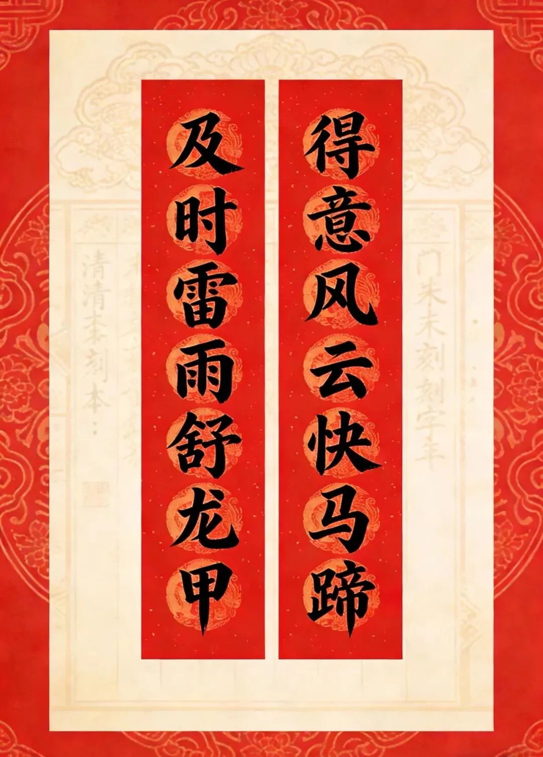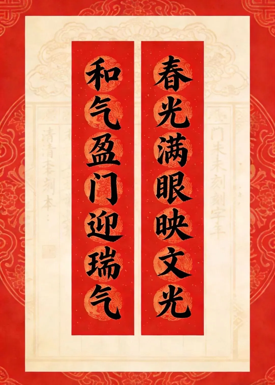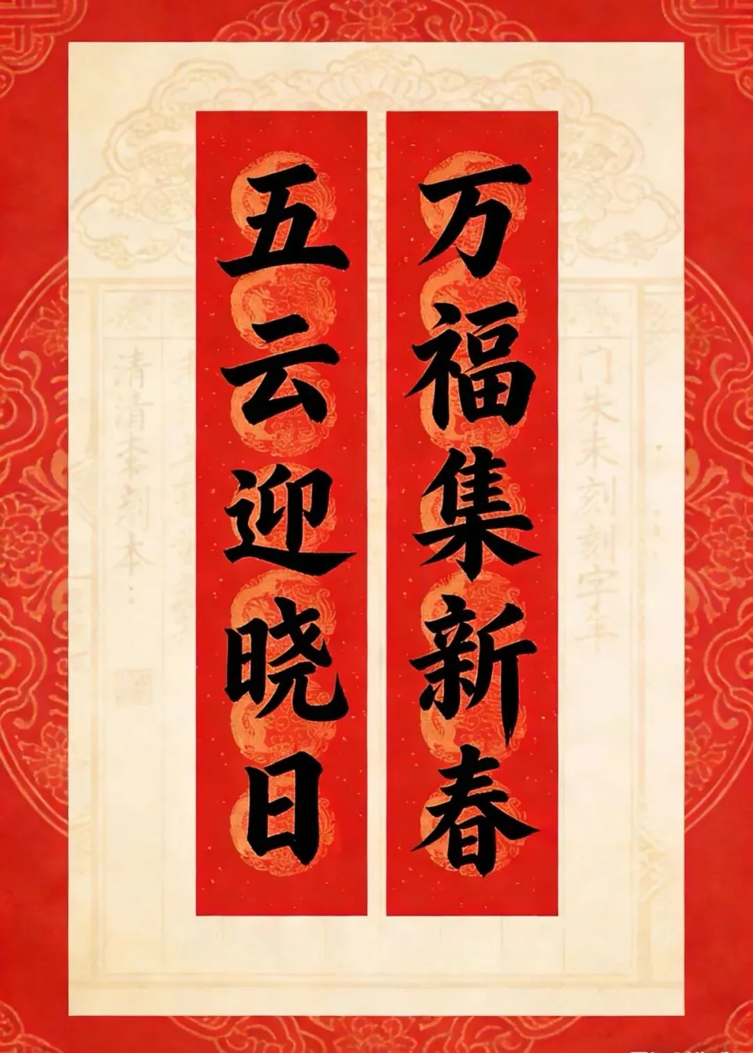 备注:“百副历代优秀春联”之一。2025年曾发布,下联为“百福庆春风”,选自清光绪二十四年(1898)刻本《对联大观》。