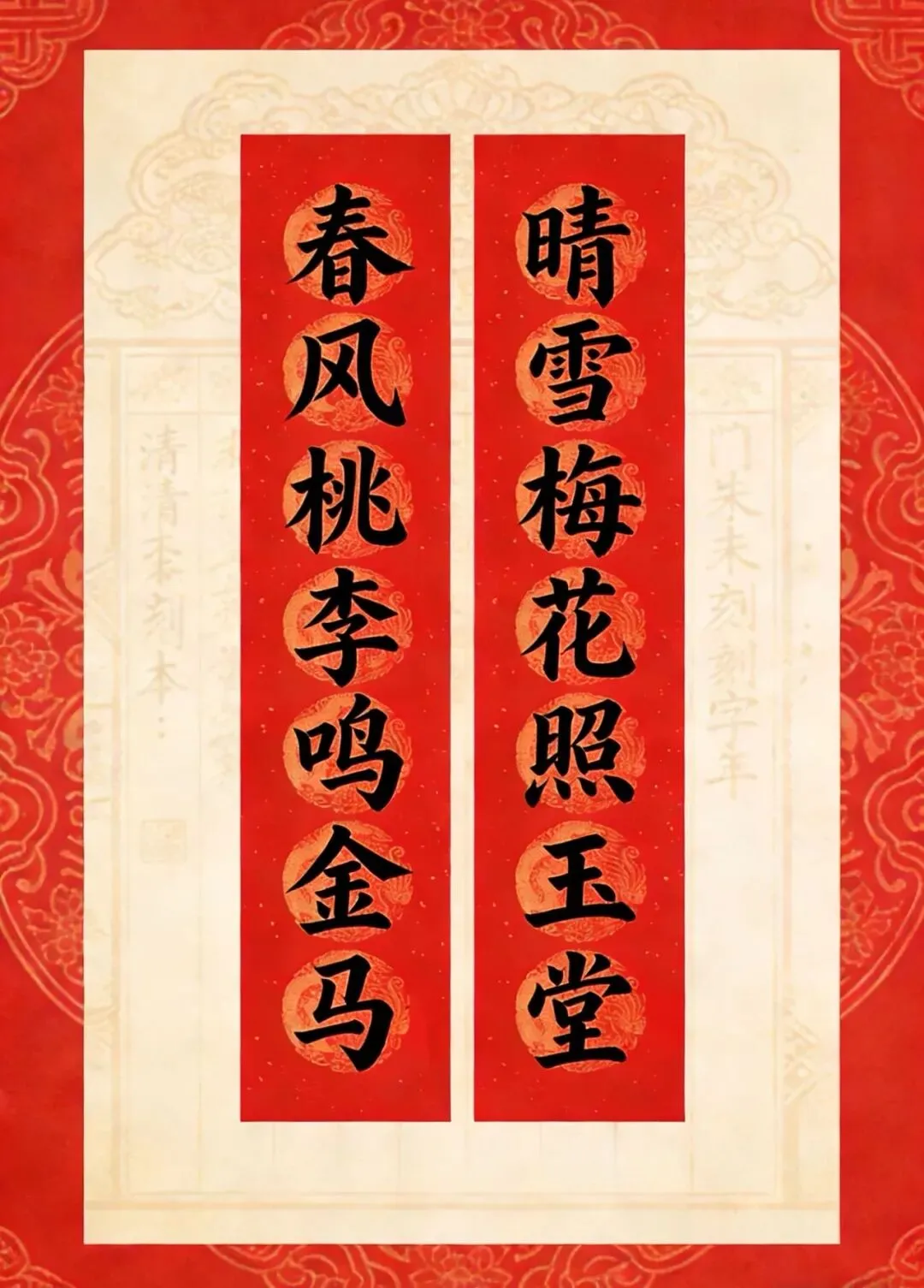 备注:“桃李”,“百副历代优秀春联”作“杨柳”,余同。