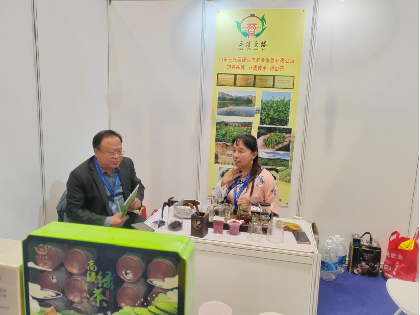 展会上,三府黛绿生态农业发展有限公司展示了博山绿茶,博山红茶等茶叶品牌,得到了茶叶爱好者的高度评价。