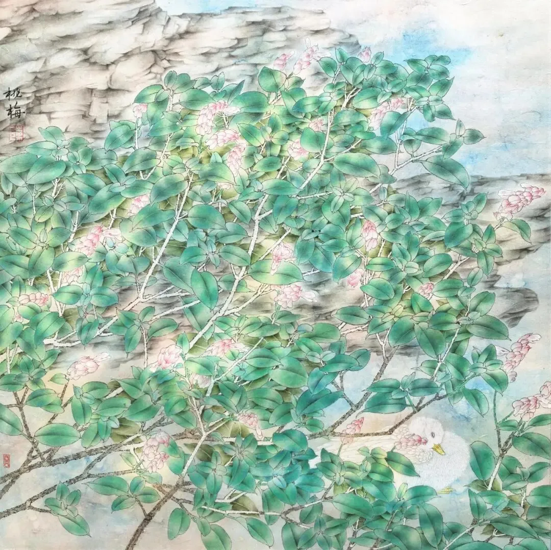 《翠影栖禽》69cmx69cm 纸本 2025年