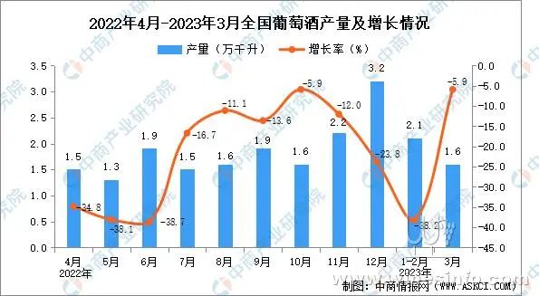 2023年3月全国葡萄酒产量增长情况: