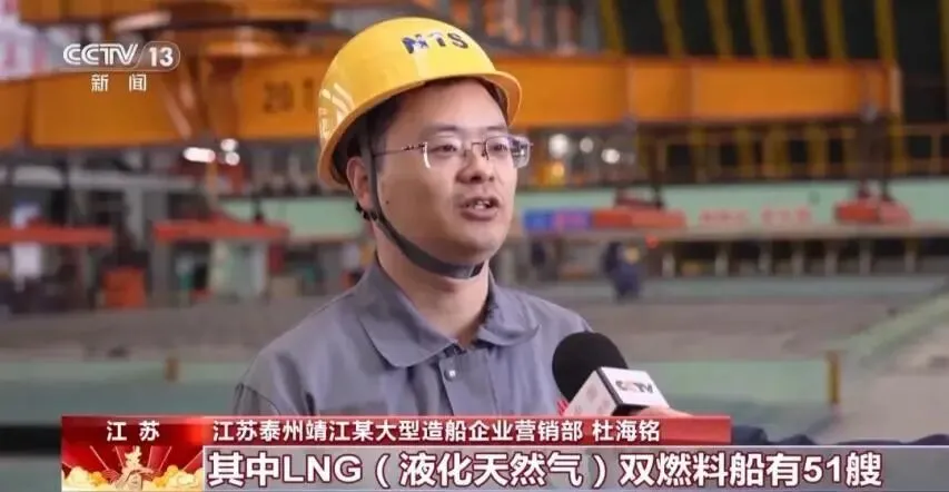 江苏泰州靖江某大型造船企业营销部 杜海铭:目前我们在手订单有101艘,载重吨1327万吨,其中液化天然气双燃料船有51艘,所有订单的生产计划已排至2027年。