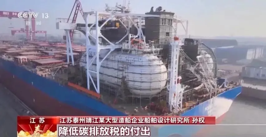 江苏泰州靖江某大型造船企业船舶设计研究所 孙权:2024年,欧盟将对船舶运输行业征收碳排放税,我们这种双燃料散货船能够为船东最大程度地降低碳排放税的付出,这样在整个船舶的运营周期中,就能为船东有效地降低运营成本。