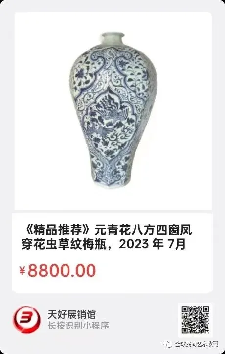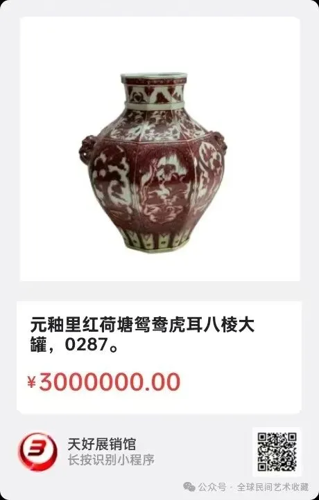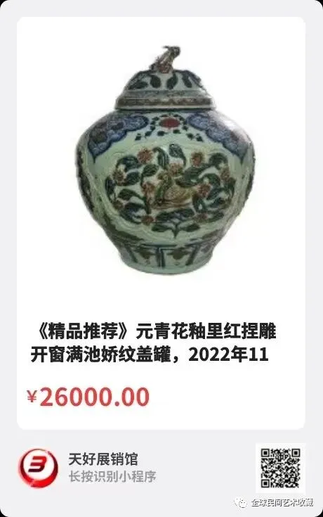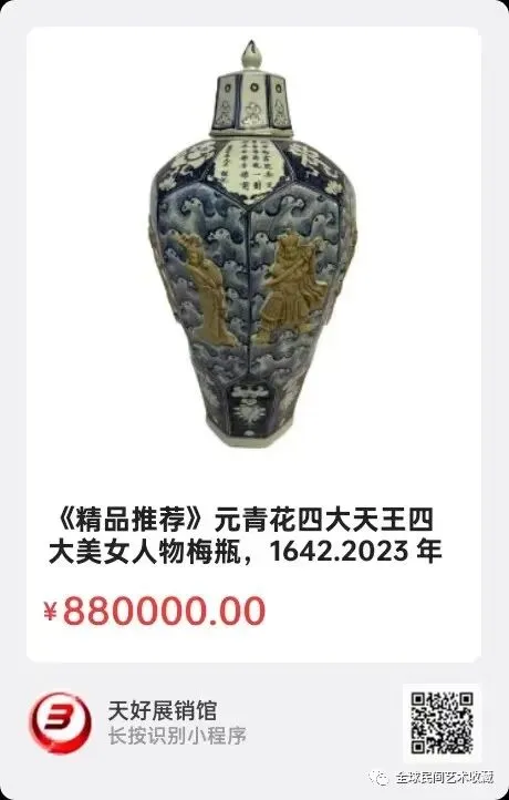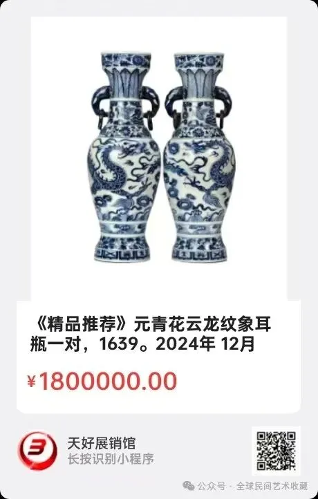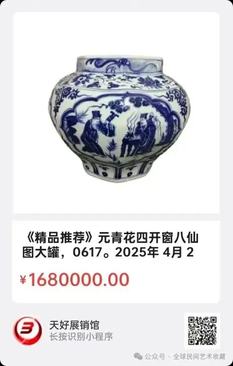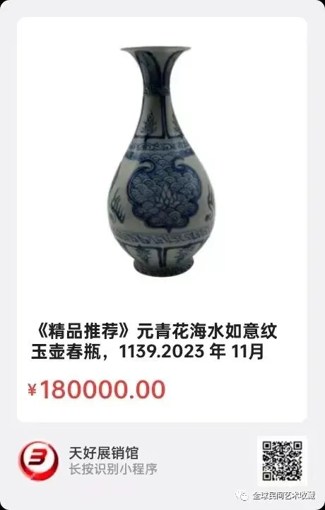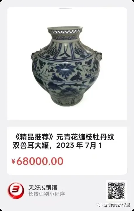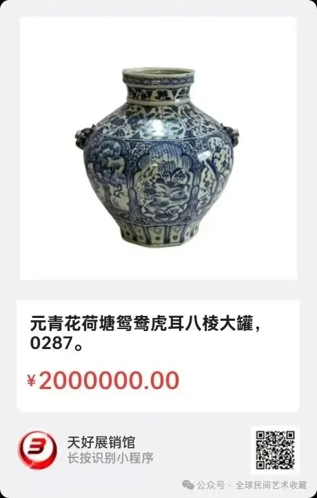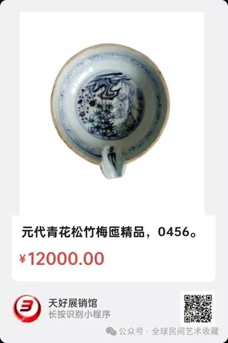 地点:《全球民间艺术收藏》《天好文化》,《天好展销馆》前二个微信公众号每期发布展讯,直接扫码进《天好展销馆》购买。