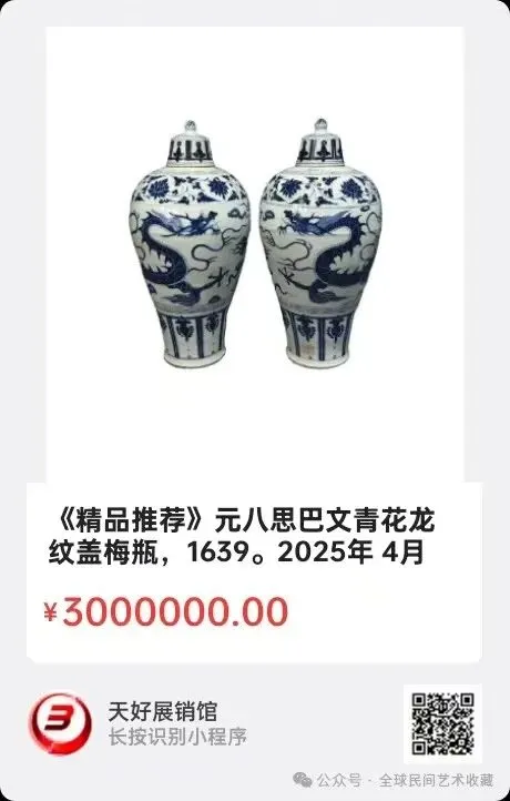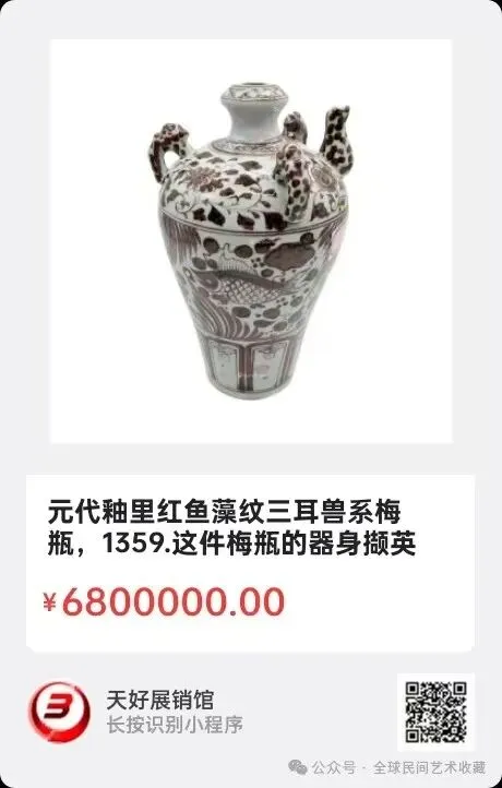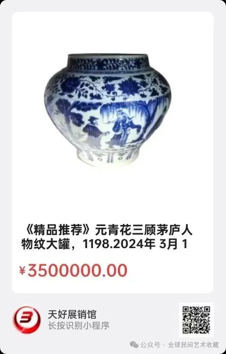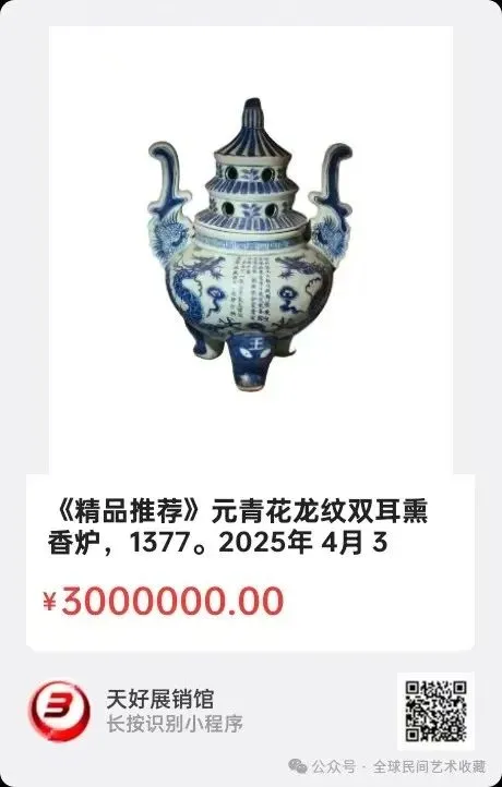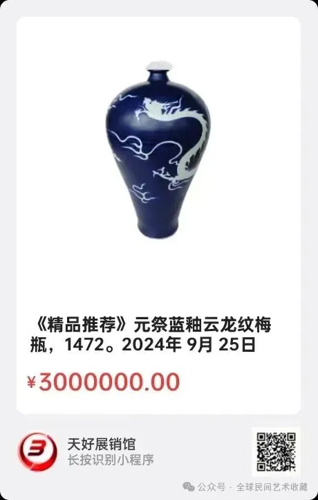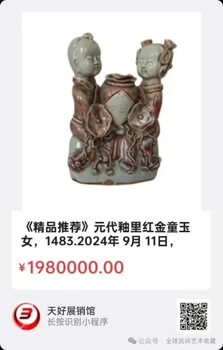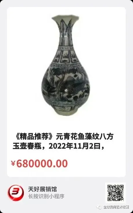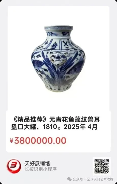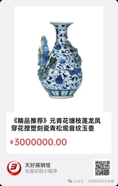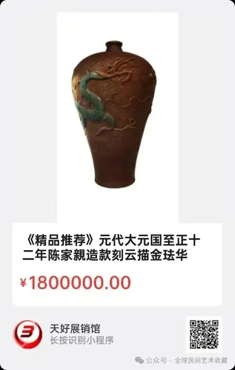 地点:《全球民间艺术收藏》《天好文化》,《天好展销馆》前二个微信公众号每期发布展讯,直接扫码进《天好展销馆》购买。