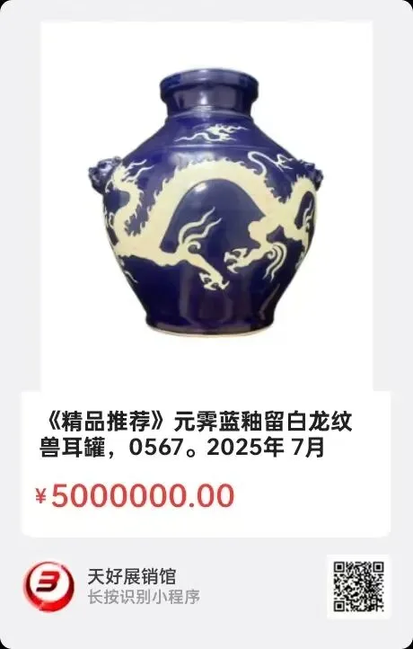 元祭蓝釉白龙纹梅瓶,尺寸:高46公分,胸径23公分;简介:从器物的器形,纹饰,特别是祭蓝釉的发色都有明显的元代祭蓝釉瓷的独特特征,尤其是在在100倍显微镜下见到的:流淌感线条纹,纵横交错的网状纹和结晶体等苏料青花瓷的特征迹象痕迹,更是该器物的真实年代身份证;以下图片纯属该器的真实特征迹象,请老师们依据图片予以鉴评。谢谢!2025年 4月 9日,经天好评审团评审,以6票优势荣登精品榜,获第166期天好海选精品。来源0343.V.