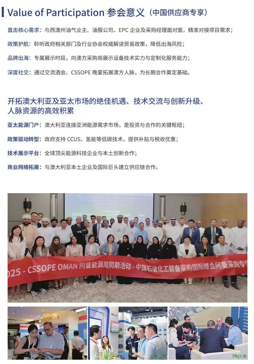 近日,由全联石油业商会、东方尚能咨询机构、澳大利亚AES 智锋澳新公司主办的 “CSSOPE 澳大利亚采购专场 / 中澳能源与矿业供应链论坛”,将与2026 年澳大利亚石油天然气展览会(EXA) 同期联动,于 2026 年 3 月登陆澳大利亚珀斯,为中国能源企业布局亚太市场搭建高价值对接平台。