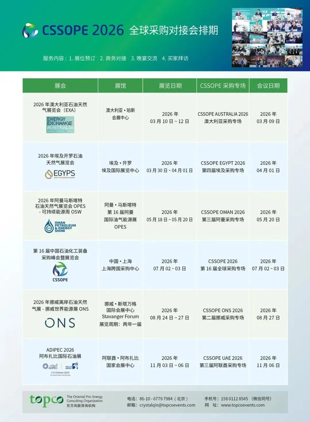 (另:目前正为参与CSSOPE 会的供应商优先办理俄罗斯石油ROSNEFT、阿曼石油PDO、阿联酋ADNOC、埃及ENPPI 工程公司、埃及MOPCO 化肥厂等主要石油化工公司的供应商入网,详询:158 0112 8545 秦女士。)