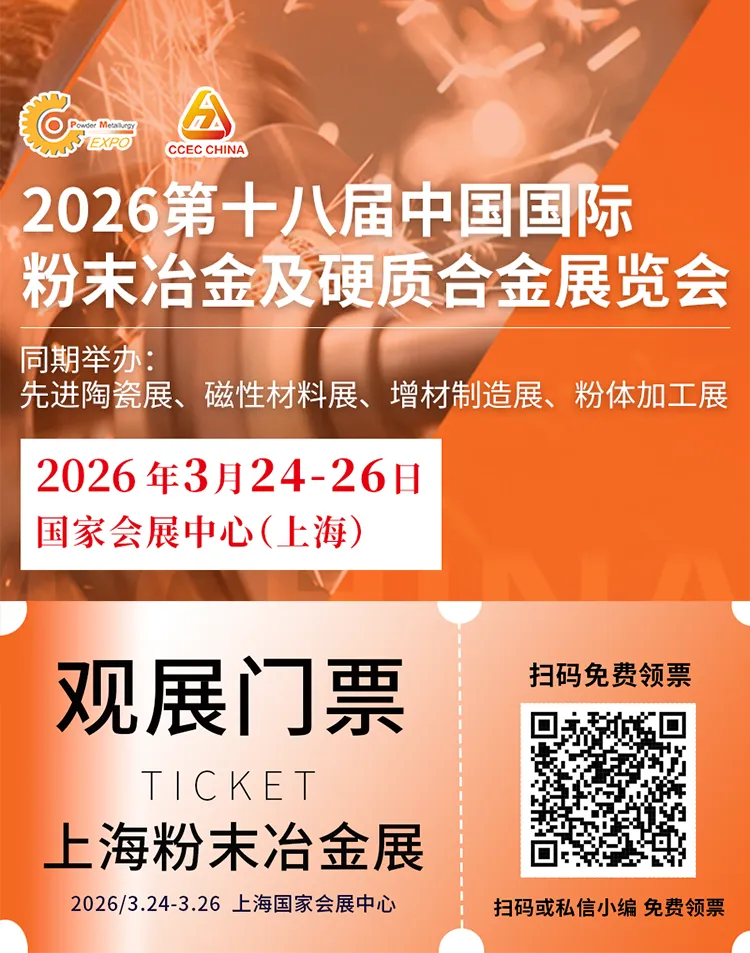 诚邀业界共聚2026年3月上海PM CHINA,一站式领略粉末冶金及硬质合金全产业链前沿成果,扫码预登记,共启产业新征程。