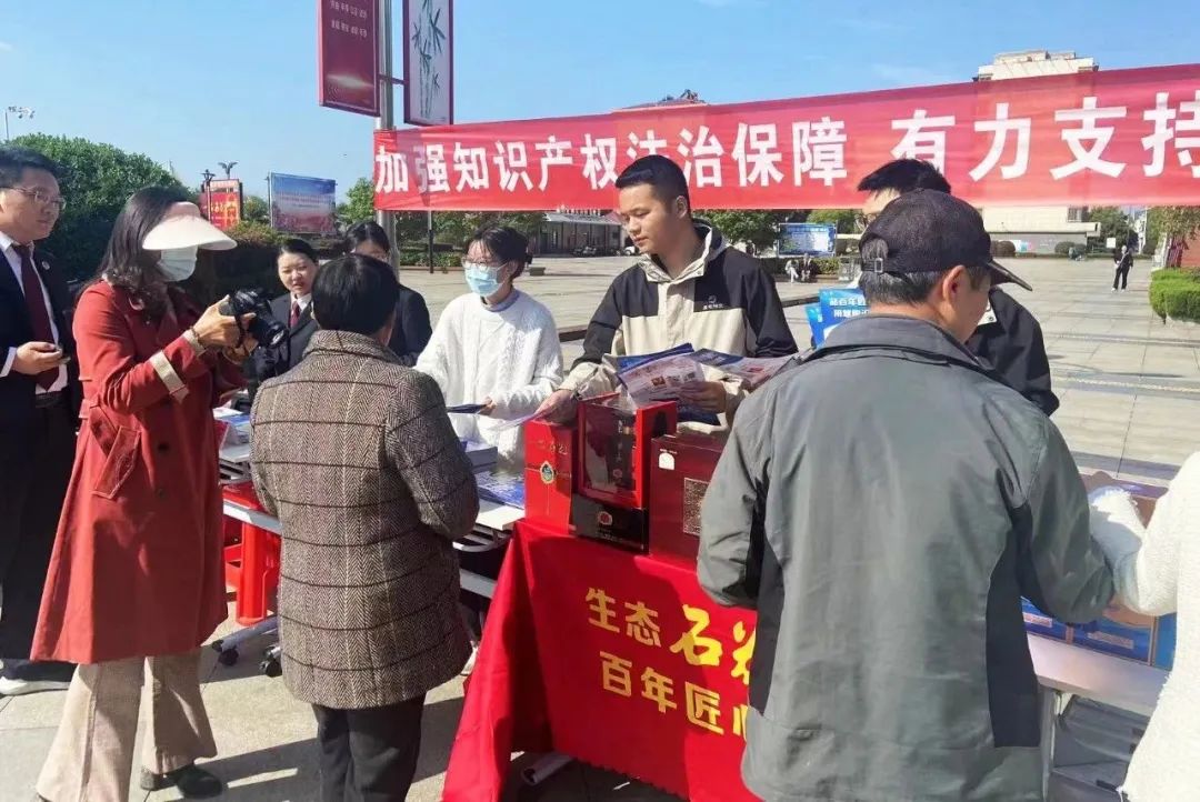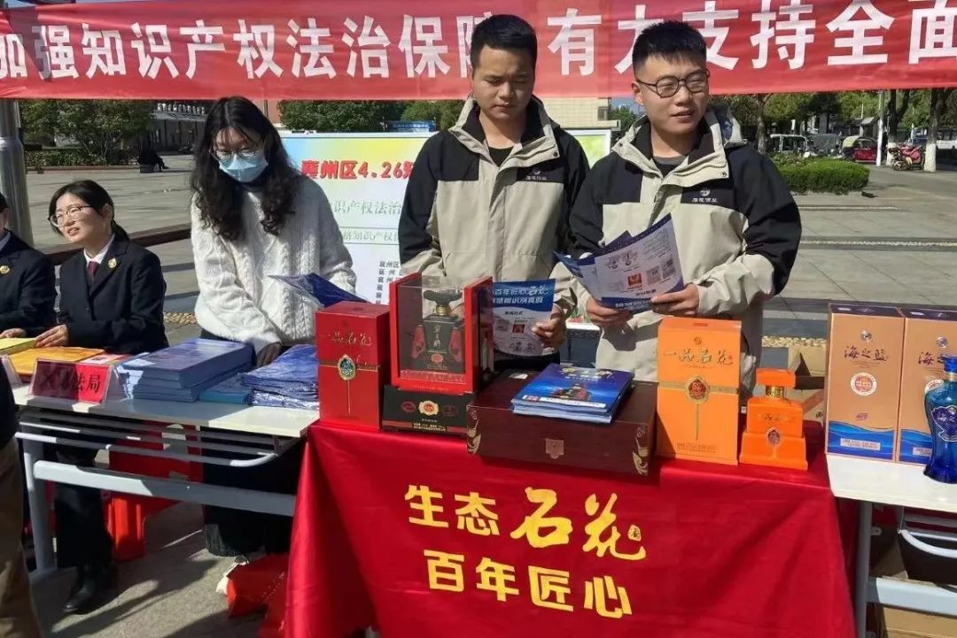 第23个世界知识产权日来临之际,为提升全民知识产权保护意识,营造全民创新、抵制侵权的良好氛围,襄州区市场监督管理局、襄州区公安局、襄州区检察院、襄州区司法局等多部门在襄州区浩然广场,以“加强知识产权法治保障,有力支持全面创新”为主题开展了一系列活动。石花酒业积极参与本次知识产权宣传活动。