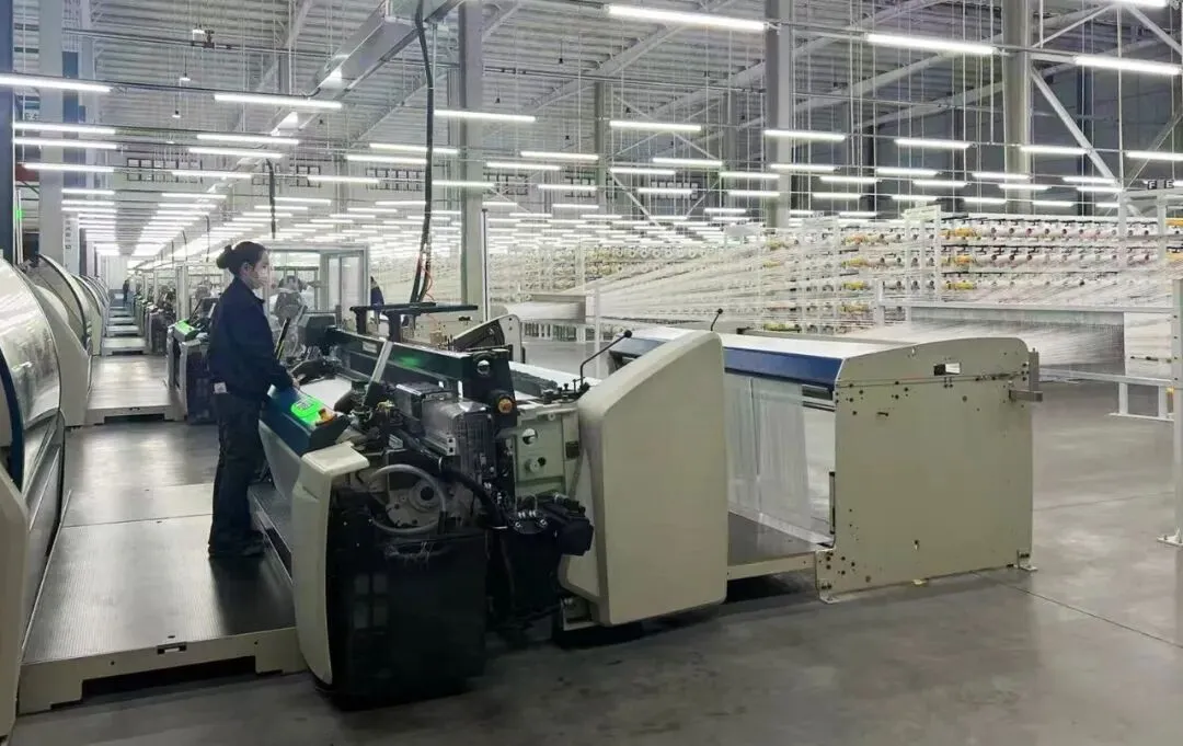 春节期间,位于沭阳经开区的江苏沙江化纤有限公司的生产线持续满产运转,日均产出50吨帘子布。这里的自动化织机开足马力运转,工人们专注操作,整个流程高效流畅。