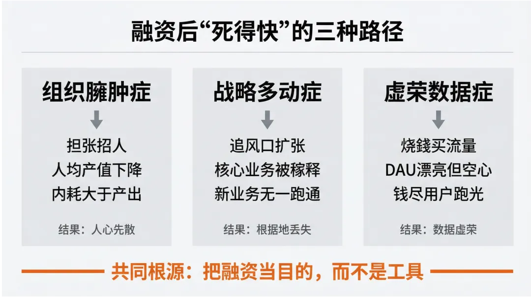 这些年看下来,拿钱之后"死得快"的公司,通常掉进这三个坑: