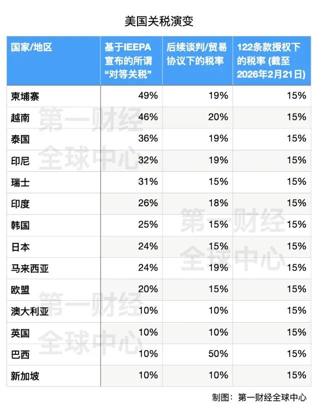面对司法挫败,特朗普并未妥协,而是迅速于21日开启“报复模式”:他转而援引《1974年贸易法》第122条,宣布征收为期150天的“全球进口关税”,并将原定的10%税率在数小时内突击上调至15%。