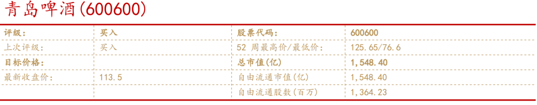 证券研究报告:【华西食品】青岛啤酒点评报告:Q1业绩超预期,期待旺季表现