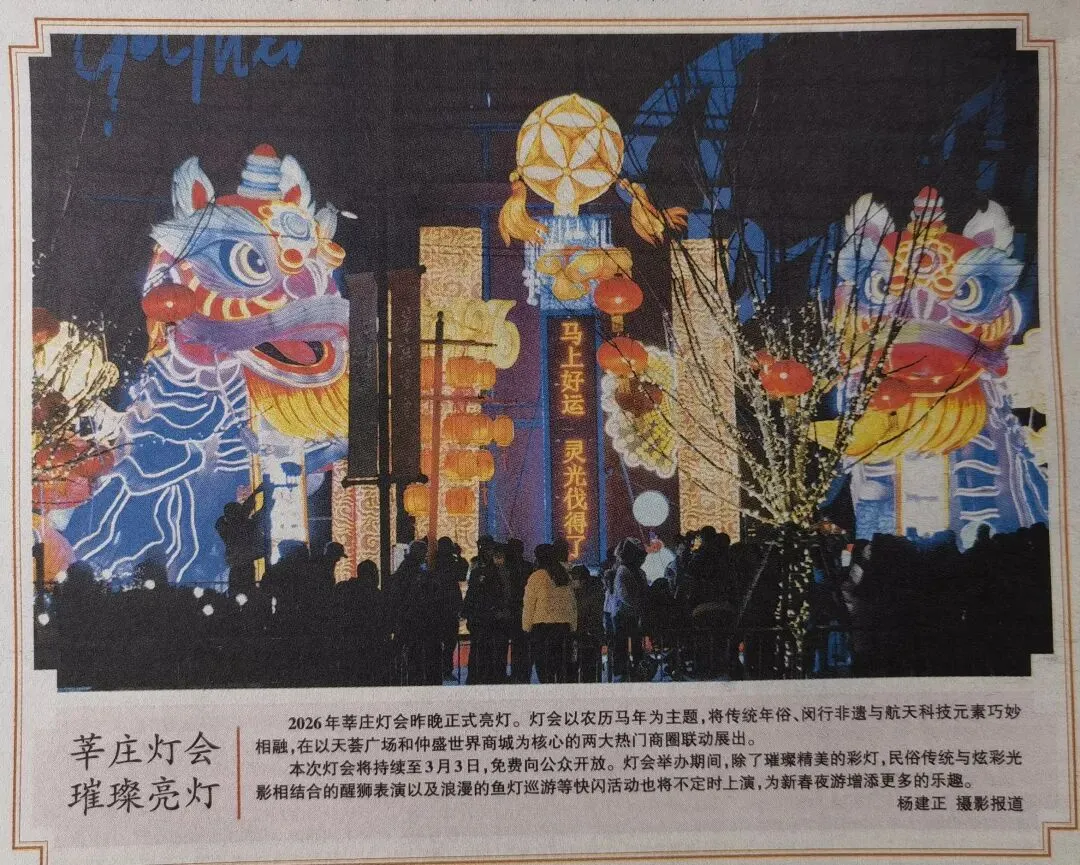 朋友提醒:今天是个成双成对的好日子。愿您的快乐加倍,健康双倍,财富双倍,好运双倍。2月22日,把双倍祝福送给你们!今天起,好事连连,福气满满,六六大顺!早上好!?❤️? 既然如此 ,本来预定明天晚上去看莘庄灯会展,改在今天,结局果然六六大顺,福气满满! 从《新民晚报》上读到,也从网上查阅,莘庄灯会展开幕了,往年每届莘庄新年灯会展我们都会赶去参观欣赏,今年是老骐小驹本命年,更不会错过,在对交通熟门熟路的小驹带领下,坐公交725路,直接来到仲盛世界商城前的广场上,灯展璀璨,紧扣马年春节主题,我记录下这辉煌的场面。