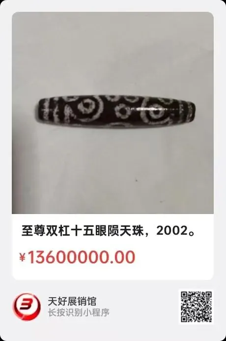 至尊双杠十五眼陨天珠长7.8cm、腹径1.65cm、重31.8克 ,陨天珠也叫至尊老天珠。它是来自宇宙火星降落的特殊陨石所制成。 有 记载的历史三千多年左右。陨天珠体内结构象是火星上的微生物化石(见微拍图片)。内里润藏着宇宙强大的磁场能量体,这种磁场能量体对人体健康有妙不可言的功能。 十五眼天珠是具有金刚盔甲的能量,可起到护身的作用,可以汇聚天体能量灌注体内,启动本有磁场,旺起财权运势。宜于生肖鸡、狗、猪的人佩戴。来源2002.V。