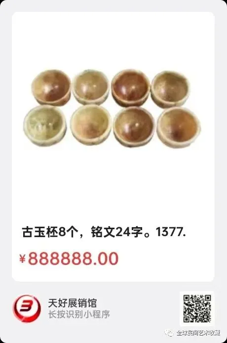 古玉柸8个,单个口径5厘米、高3厘米、铭文24字。来源:1377.V。