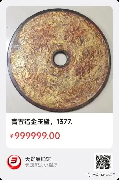 高古错金玉璧,直径30厘米,来源:1377.V。