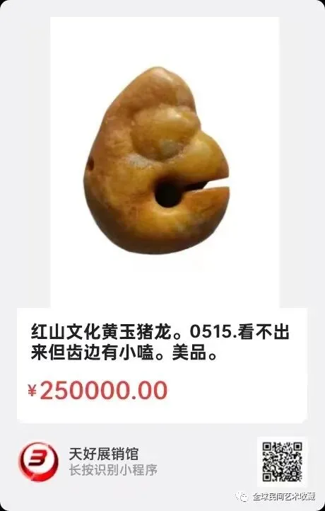 红山文化黄玉猪龙。看不出来但齿边有小嗑。美品。高5.2公分。来源:0515。