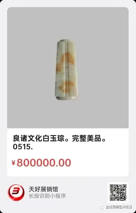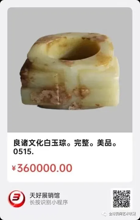 良诸文化白玉琮。完整。美品。高3.8公分。直经7公分。来源:0515。