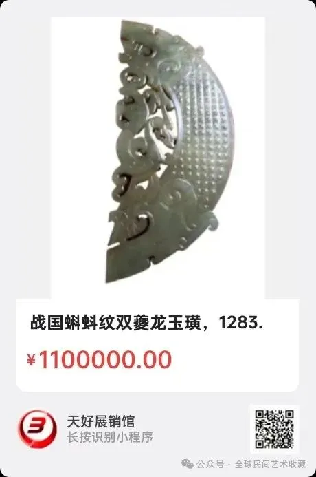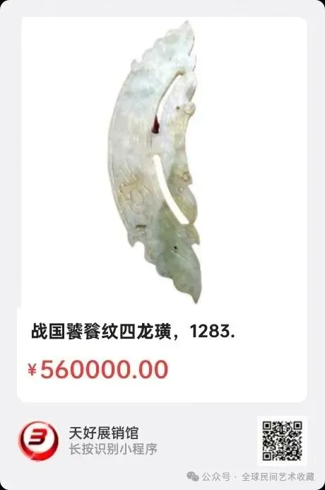 战国饕餮纹四龙璜,长23㎝宽8㎝重208克,来源1283.
