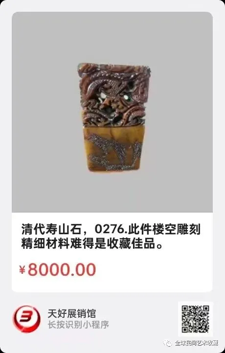网络展销地址:《全球民间艺术收藏》《天好文化》,《天好展销馆》前二个微信公众号每期发布展讯,进《天好展销馆》购买。