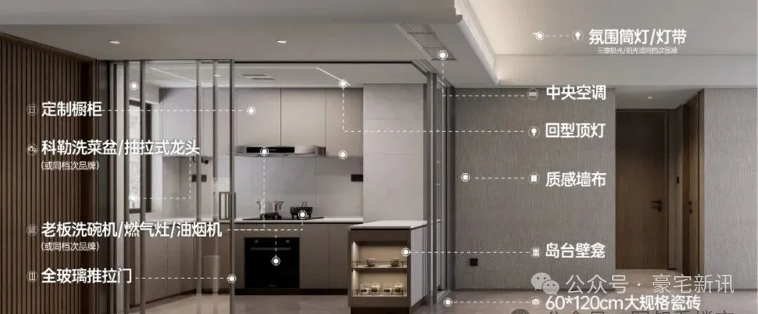 外立面铝板及玻璃占比约70%,造价是一期的10倍,可以很好的隔热降噪、防潮抗腐蚀,历久弥新。入户赠送收纳功能强大的玄关柜,厨房天花采用石膏板+回型灯设计,客餐厅天花弧形吊顶、地面采用大地砖,造价更高、更耗时耗力,也更美观。园林设计上,森系度假美学景观,公区质感跃级,优选石材、铝板、铝格栅等,入户大堂奢华感拉满。项目实拍图