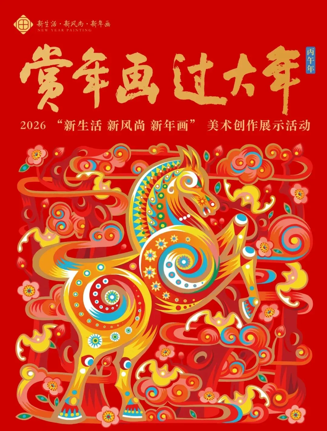由中央宣传部文明实践局、文化和旅游部公共服务司、中国美术家协会、中国民间文艺家协会共同主办,文化和旅游部全国公共文化发展中心、中国文联美术艺术中心、中国文联民间文艺艺术中心承办,北京市文学艺术界联合会、江西省文学艺术界联合会协办。活动以习近平新时代中国特色社会主义思想为指导,旨在以年画艺术激活传统节日文化内涵,营造文明祥和的节庆氛围。 值此农历新年之际,“2026年‘新生活•新风尚•新年画’美术创作展示活动”,为丙午马年的春节增添了一抹绚丽的色彩。活动通过创作展示一批优秀的年画作品,丰富传统节日文化内涵,营造文明祥和的节庆氛围,让传统春节更具年味,让人民群众的精神文化生活更加丰富多彩。