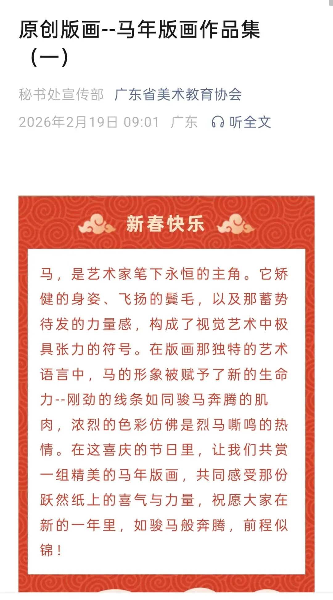 【记录收获--版画《马年大吉》入展—2026】北京服装学院。