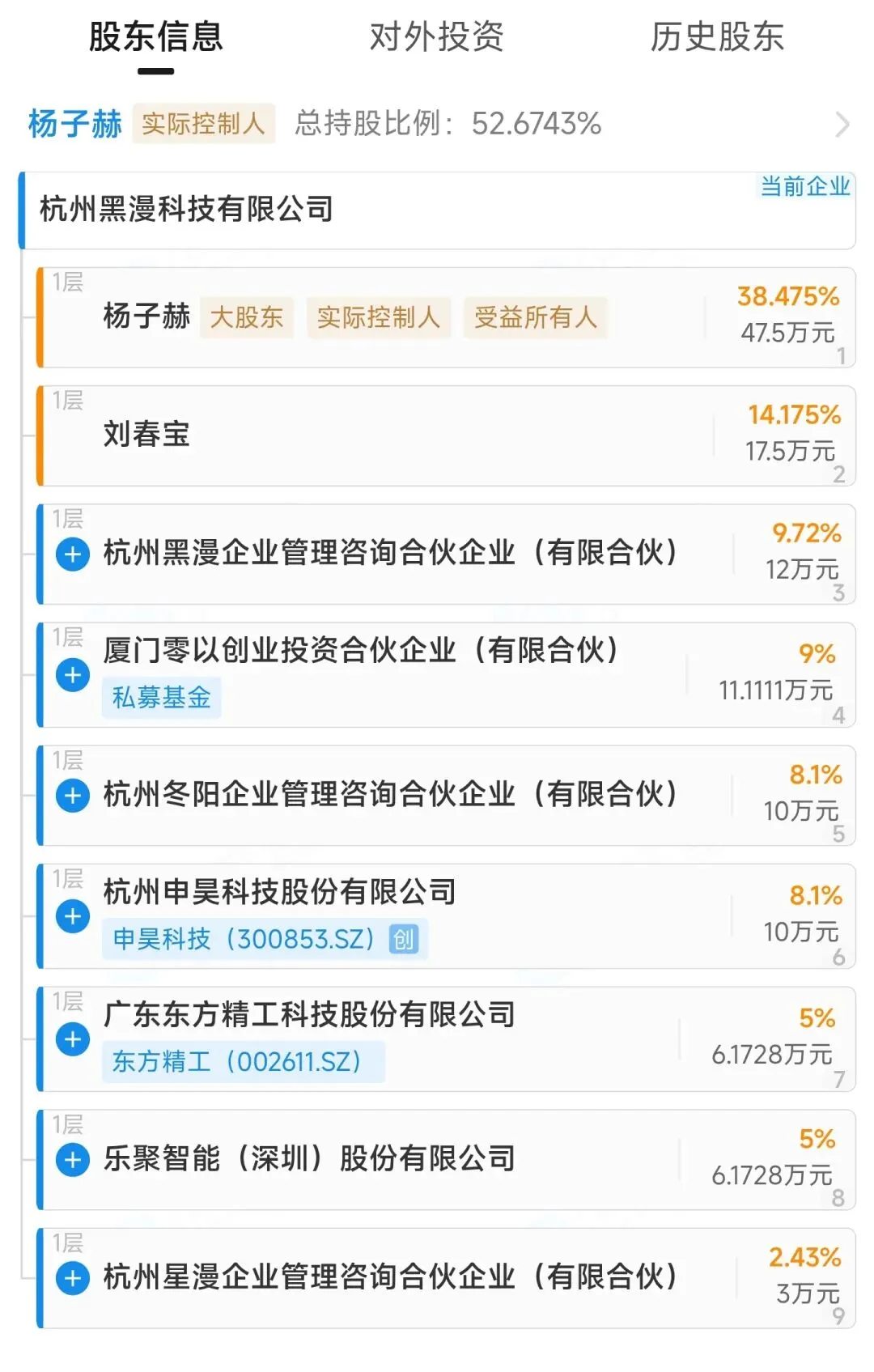1. 2025年7月16日:公司正式在杭州余杭区注册成立,法定代表人为杨子赫,由上市公司申昊科技等主体共同持股,定位高端仿生机器人核心部件研发,由申昊科技与火星加速器联合战略孵化。