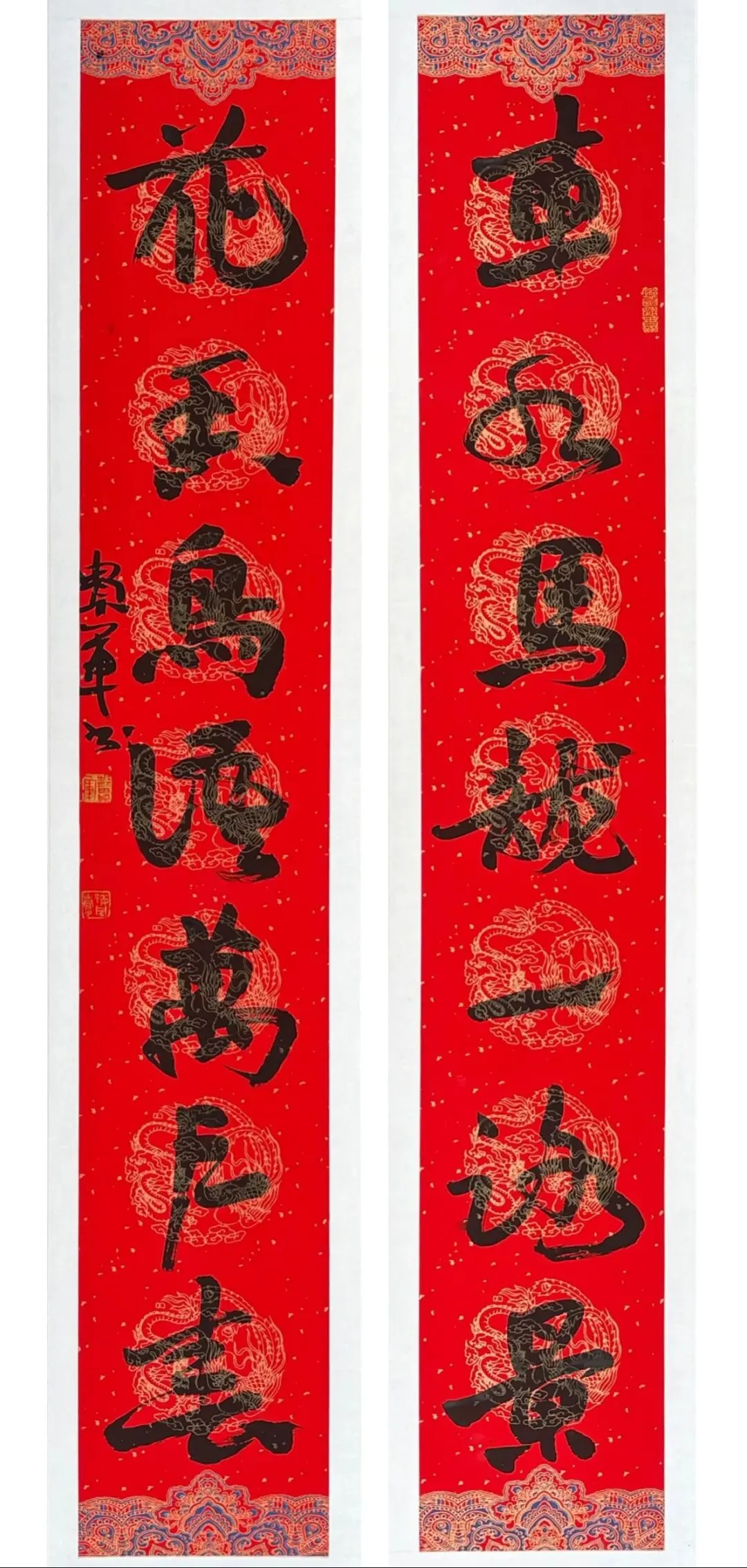 ■ 释文:笔挥盛世写华章·蹄踏新春开锦绣