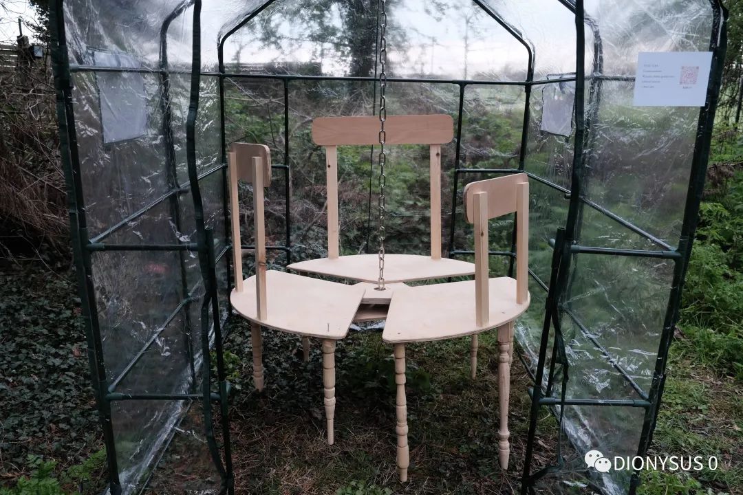 YEZI YAN,Communication,Wooden chairs, garden tent, infrared sensors,1.4mx1.6m