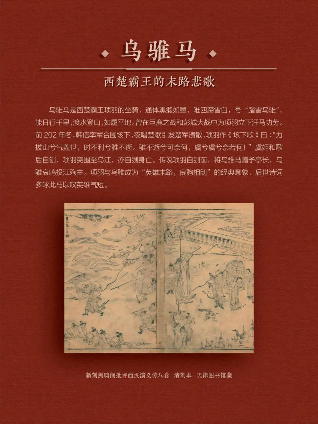 展览内容:本次展览通过“驭风韵俗”“竣功昭世”“文典寻骢”“骐骝骅骥”四个单元探索骏马背后的历史故事,感受奔腾不息、多彩多姿的马文化精神,领略“春风得意马蹄疾”的豪情诗意。现场还将设置互动翻牌和配套阅读展板等互动展项,介绍名马神骏相关的历史典故和马文化中的民俗意趣。