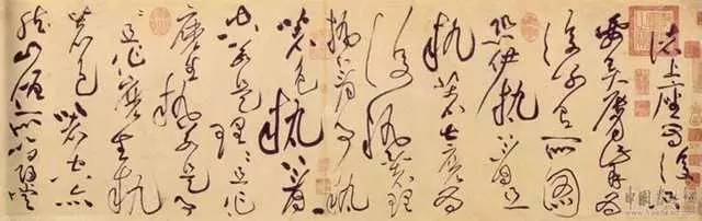《诸上座》卷 (北宋)黄庭坚,故宫博物院藏。此卷为纸本,大草书,纵33厘米,横 729.5厘米。《诸上座》原为五代金陵僧人文益语录的节录,通篇是“禅宗”的语言。此卷是黄庭坚为他的朋友李任道写的,款署“山谷老人书”,钤“山谷道人印”,运笔圆劲苍老,笔势雄畅。卷后有明代吴宽、 清代梁清标跋。