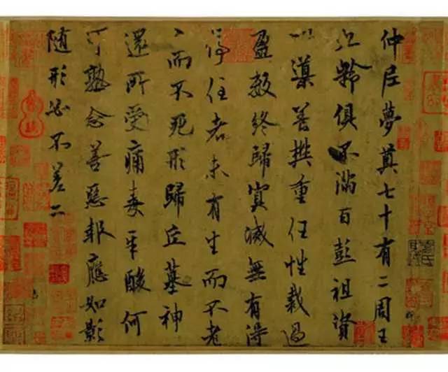 《神仙起居法帖》卷(五代) 杨凝式,故宫博物院藏。神仙起居法帖,书于后汉乾祐元年(948年,杨凝式时年76岁),当属其晚年代表作。卷前有题签“杨凝式书神仙起居法墨迹”,帖后有宋代米友仁、元代商挺、清代张孝思题记及楷书释文五行。