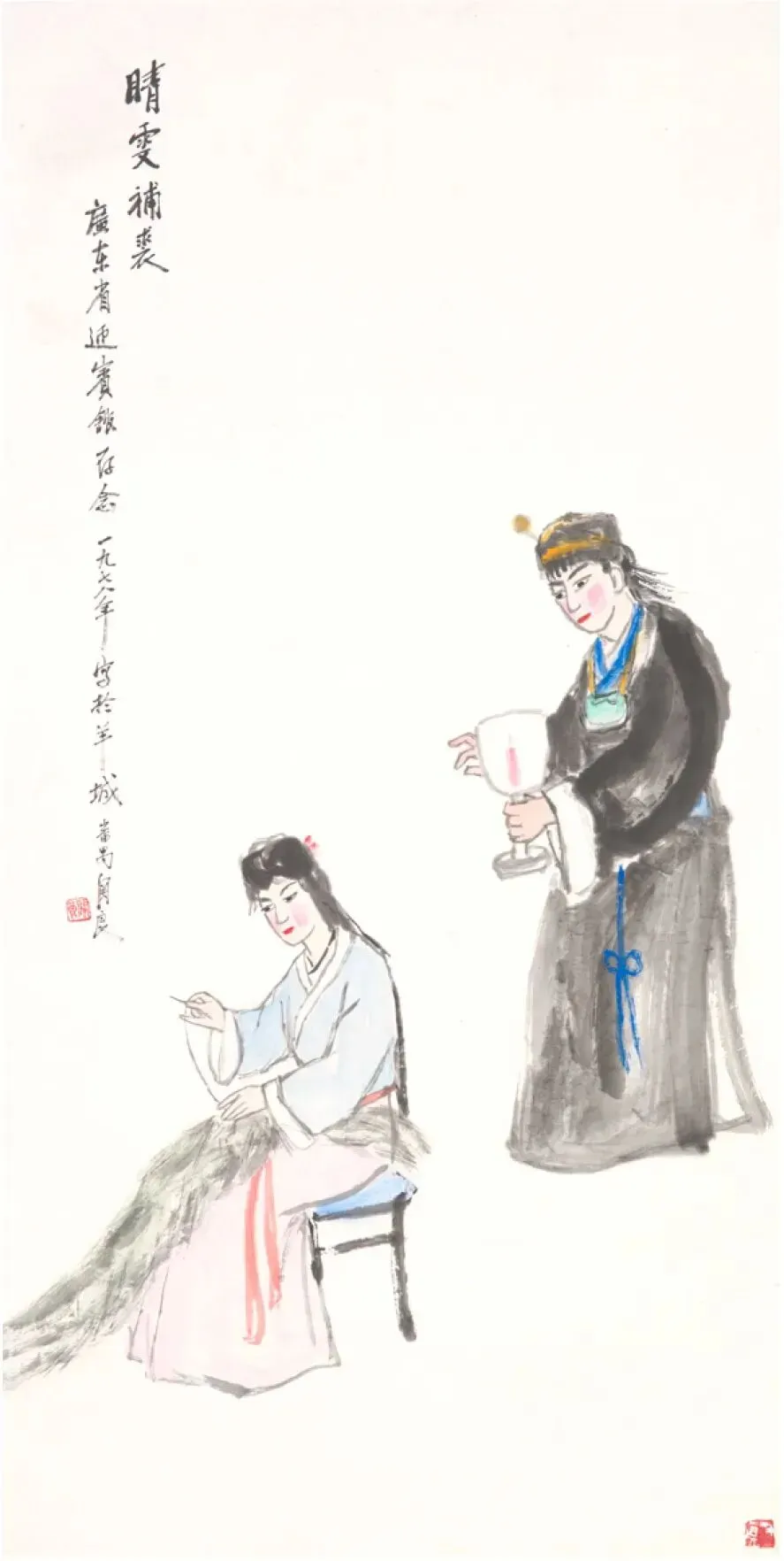 题跋:晴雯补裘。广东省迎宾馆存念,一九七八年写于羊城。番禺关良。